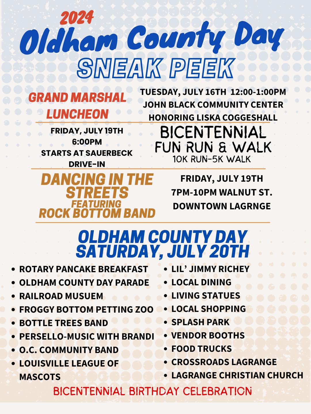 Join in this yearly community celebration of Oldham County held in La Grange, KY! This year is extra special as we celebrate Oldham County’s 200th year!