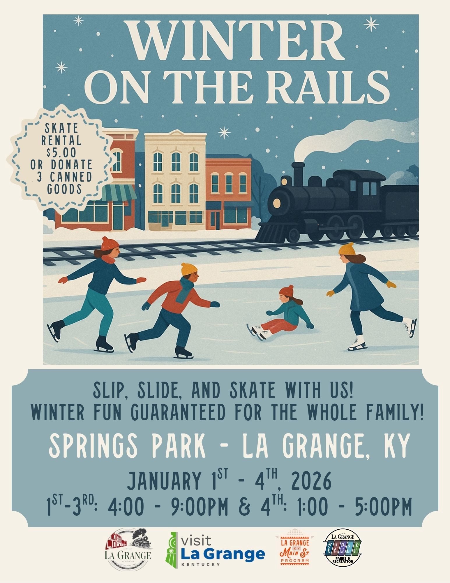 Join us at Springs Park for Winter on the Rails! Slip, slide & skate with us! Winter fun guaranteed for the whole family!